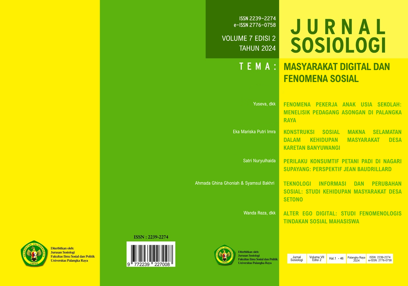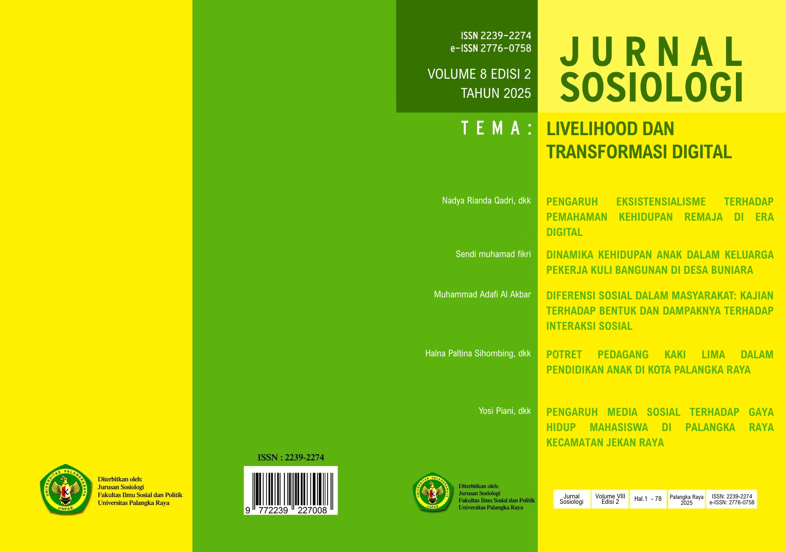 Perubahan sosial, ekonomi, dan budaya yang terjadi di Indonesia terus menghadirkan tantangan baru bagi masyarakat. Keberagaman identitas, dinamika keluarga kelas pekerja, serta pengaruh teknologi digital menjadi isu yang semakin relevan untuk dikaji. Dalam edisi ini, Jurnal Sosiologi menghadirkan serangkaian artikel yang menyoroti berbagai fenomena sosial kontemporer, mulai dari diferensiasi sosial dalam masyarakat majemuk, dinamika kehidupan anak dalam keluarga pekerja informal, hingga pengaruh eksistensialisme dan media sosial terhadap generasi muda.