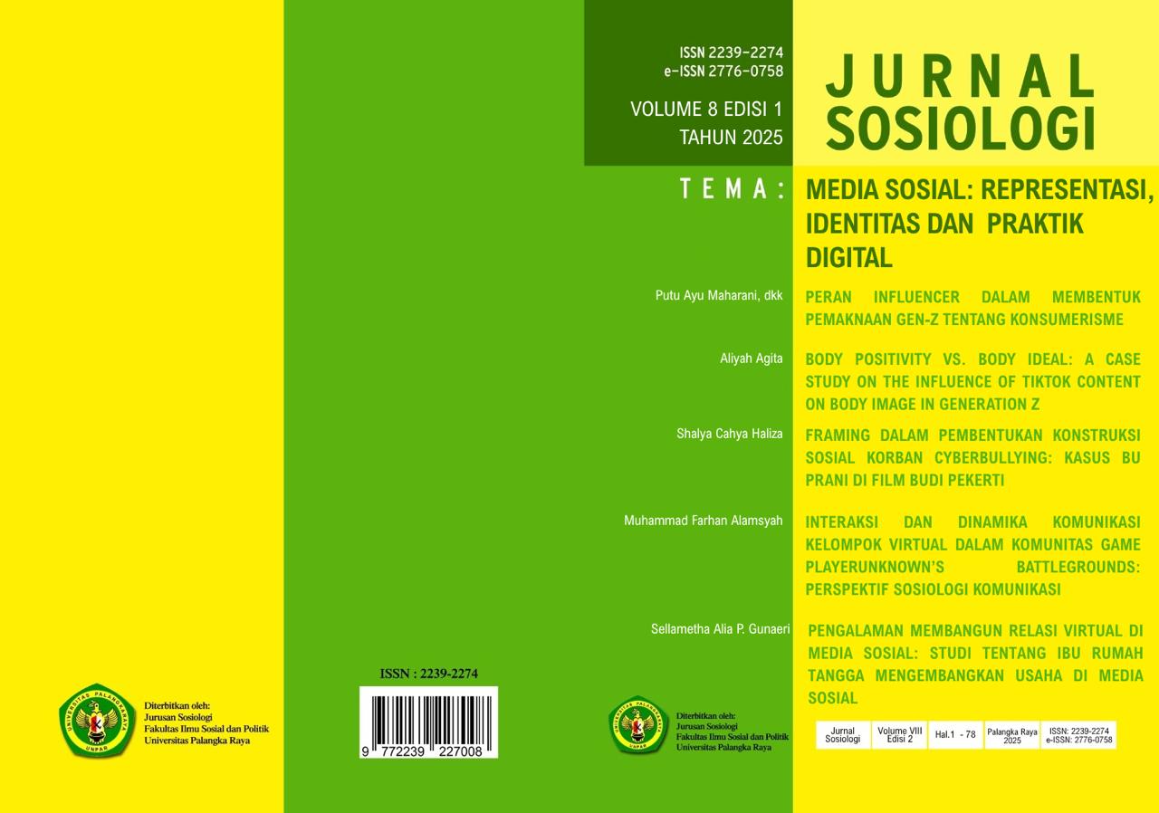 Artikel ketiga ditulis oleh Shalya Cahya Haliza dengan judul “Framing dalam Pembentukan Konstruksi Sosial Korban Cyberbullying: Kasus Bu Prani di Film Budi Pekerti”. Tulisan ini menggunakan pendekatan framing untuk menelaah bagaimana representasi korban dalam medium populer membentuk persepsi publik terhadap cyberbullying. Dengan menganalisis narasi film dan cara framingsosial diproduksi, artikel ini menyingkap implikasi representasi tersebut terhadap atribusi tanggung jawab, stigma, dan kemungkinan respons kolektif masyarakat terhadap korban di ranah digital.